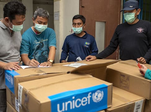 UNICEF œuvre pour permettre un accès à des installations d’approvisionnement en eau potable, d’assainissement et d’hygiène aux familles et aux communautés pour se protéger du virus par des distributions de savons et de kits d’hygiène. En plus de fournir des systèmes d’urgence pour la distribution d’eau auprès des populations locales, UNICEF et ses partenaires distribuent des produits essentiels aux écoles, aux centres de santé.