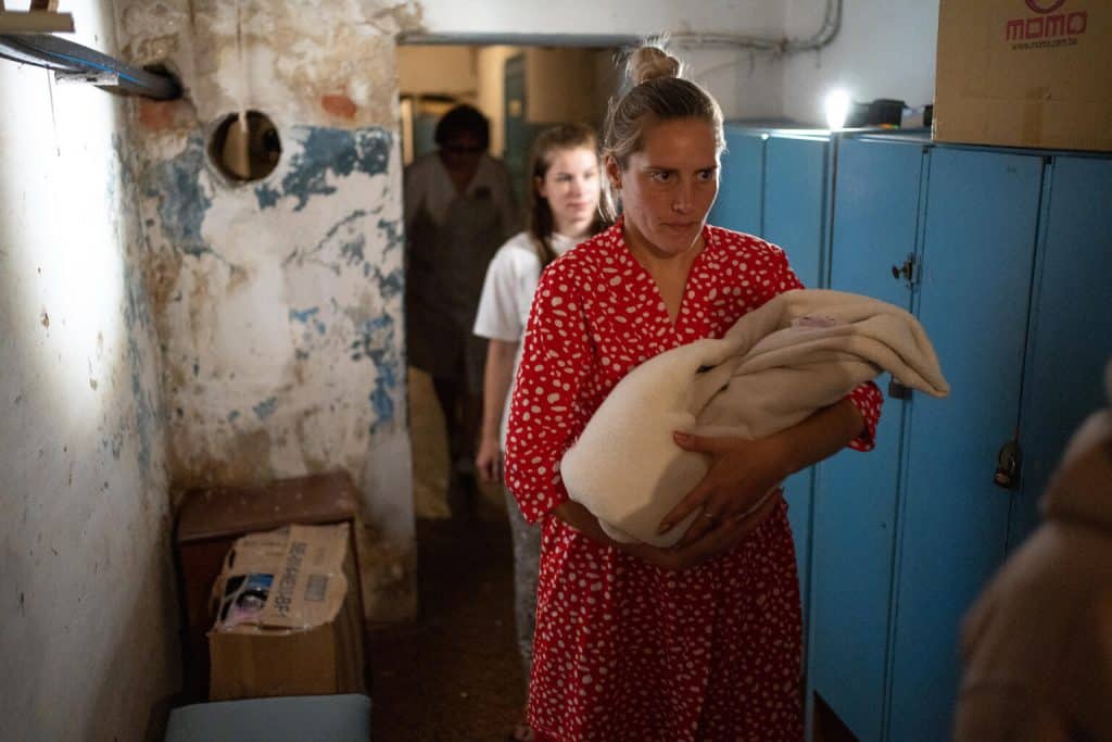 « C’est très dangereux », nous indique Oksana, une sage-femme de l’hôpital. « Notre ville a subi des tirs sévères. C’est pourquoi nous n’ignorons jamais les sirènes qui annoncent les raids aériens. Ils font désormais partie de notre quotidien ».