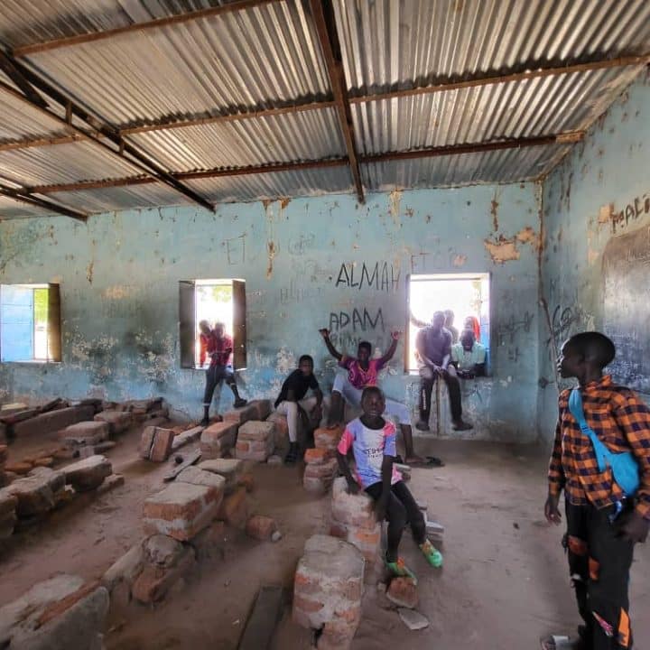 Des enfants joue dans une école vide après avoir fuit le Soudan. © UNICEF/UN0837024/Relano